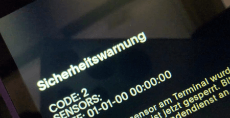 Bildschirm mit einer Sicherheitswarnung, die Code und Datum anzeigt.