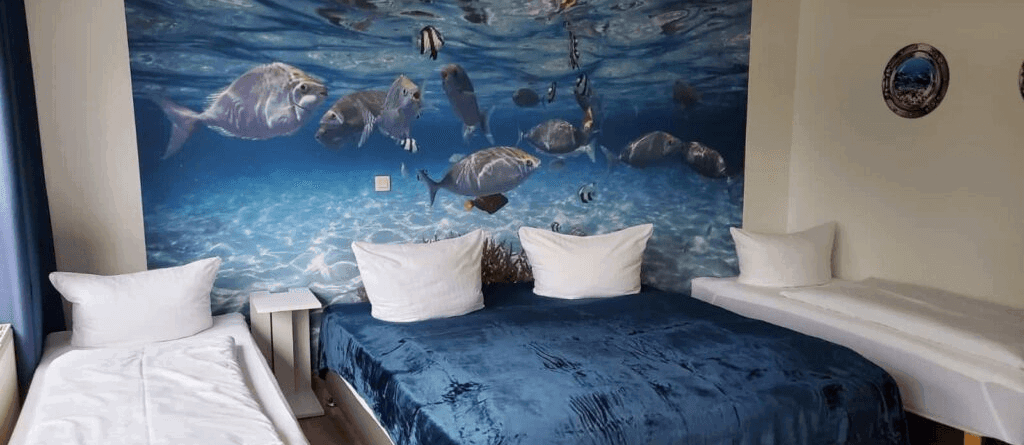 Und weil wir nun halt maritim sind, haben wir uns für eine etwas andere Tapete in der 21 entschieden. Wir möchten strahlende Kinderaugen, wenn dieses Zimmer betreten wird.