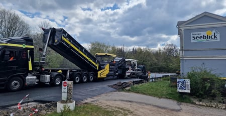 Die gröbsten Arbeiten an dem uns betreffenden Bauabschnitt sind nun abgeschlossen. Und alle Beteiligten haben Wort gehalten. Vorbei sind die Zeiten, wo uns unsere Gäste durch Kratzer im Asphalt und knirschende Geräusche im Ohr in Erinnerung geblieben sind :)