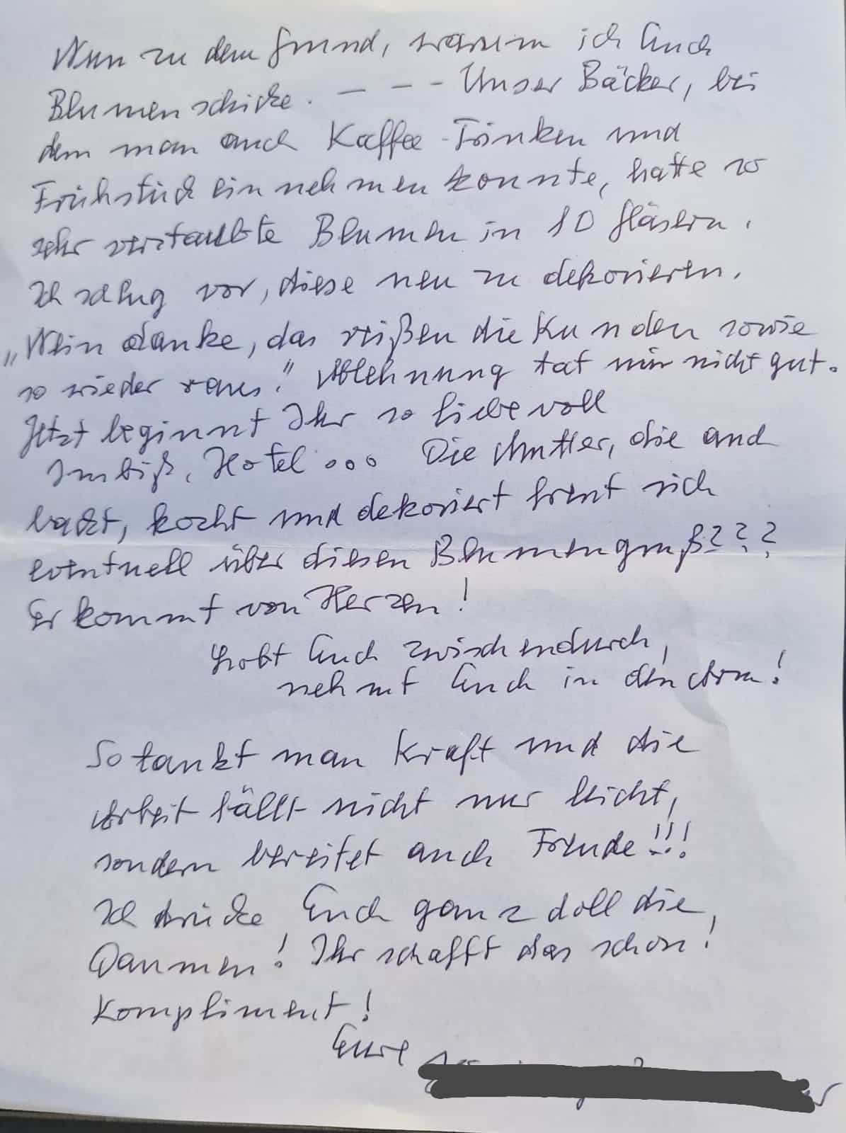 Vor ein paar Tagen / Wochen hatten wir 4 ältere Gäste zum Kaffee empfangen. Sie kamen spontan vorbei, und wollten auf unserer Terrasse entspannen. Man kam ins Gespräch, und natürlich wurden wir auch über das Hotel ausgefragt. Erzählen wir doch gerne!