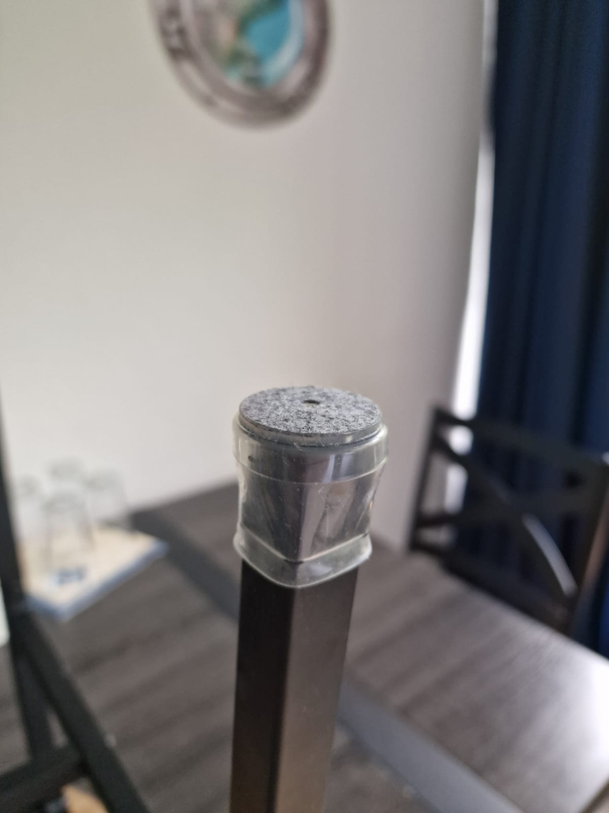 Unsere Zimmer sind mit hochwertigem Vinylboden ausgelegt. Ideal eigentlich, denn Teppich in Hotelzimmern ist nicht mehr Stand der Zeit. Der Nachteil ist natürlich, dass Geräusche nicht so gut gedämpft werden. Dies machte sich bei unseren neuen Stühlen bemerkbar, die zwar wunderschön aus Metall gearbeitet sind, aber keinerlei Schutz gegen Geräusche und Kratzer bieten.