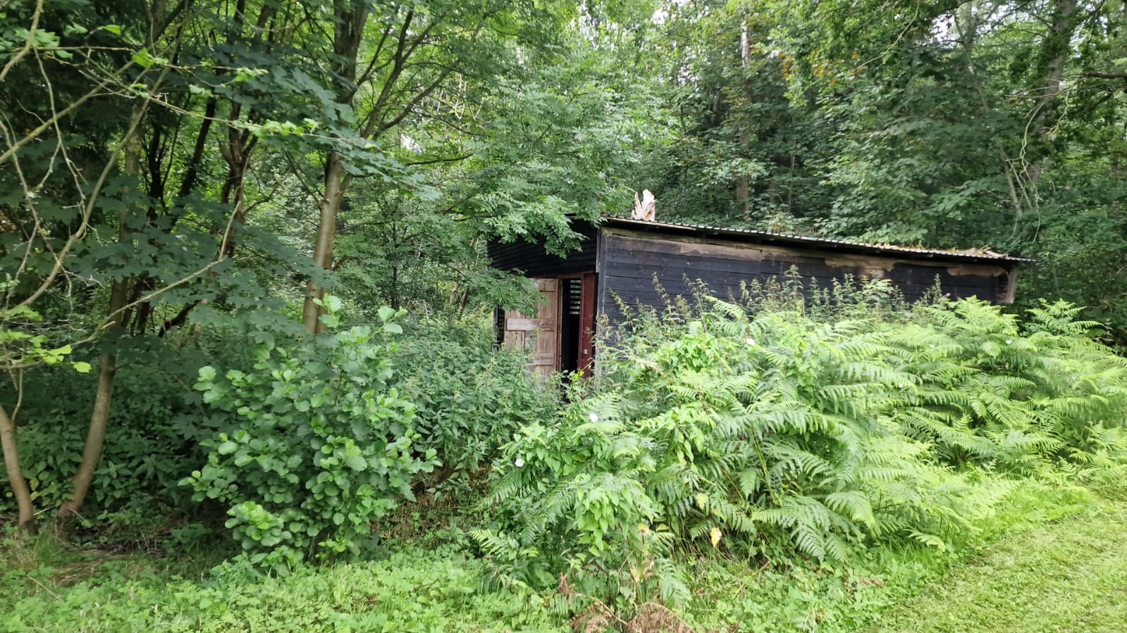 Wir haben ja noch unsere Hütte im Wald. Einst war sie der Ruheort für den Besitzer des Restaurants, dann passierte nichts mehr. Okay, wahrscheinlich zogen hier und da ein paar Vandalen ein, denn eine Tür wurde offenbar zu Heizzwecken verbrannt :)