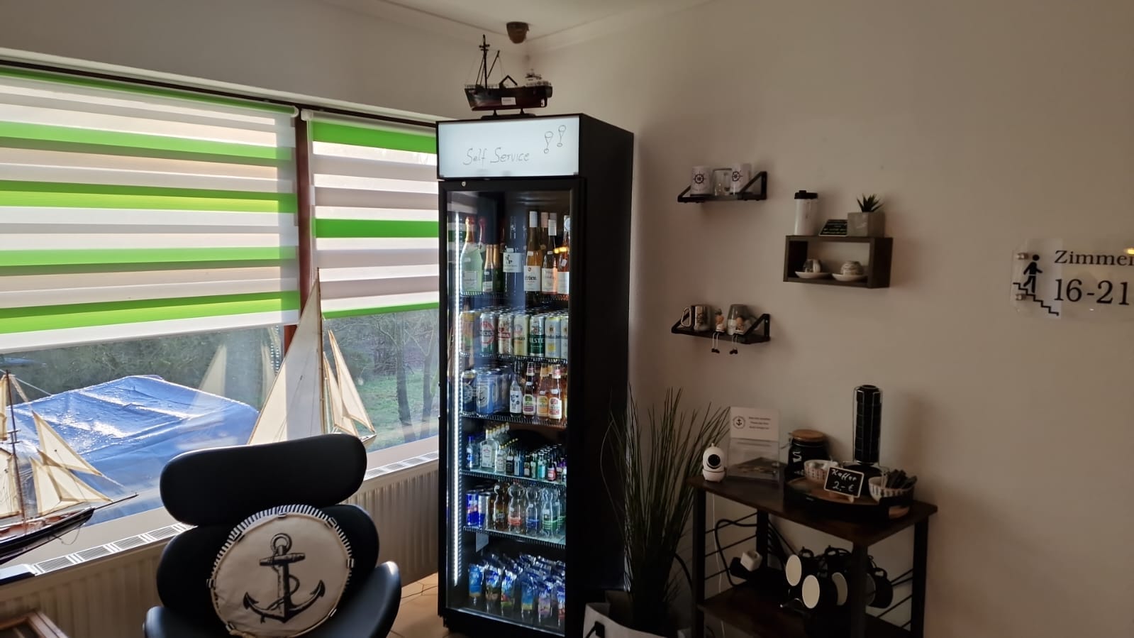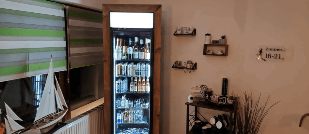 Es wurde ja schon angedeutet, wir machen bei uns im Empfangsbereich einiges neu. Unter anderem verpassen wir auch unseren Holzelementen einen neuen Look. Da kam uns spontan die Idee, dass man doch aus unserem Kühlschrank auch einen Hingucker machen könnte.