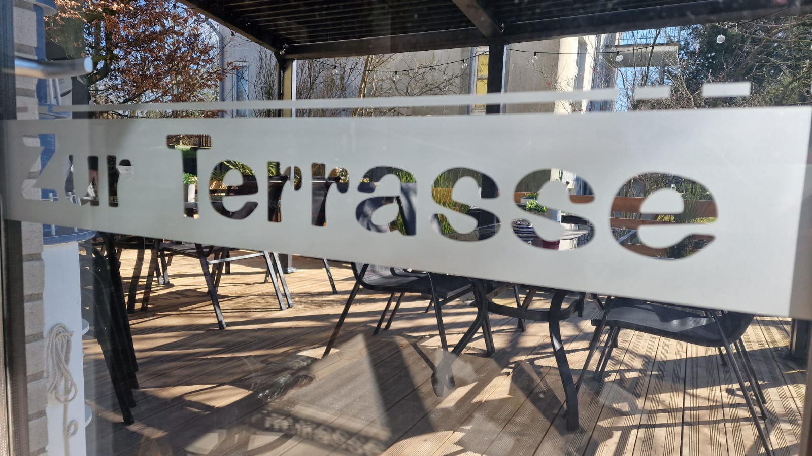 Vor ein paar Monaten war die Tür zur Terrasse das Tor zur Hölle. Unkraut, schiefe Betonplatten und einfach eine sehr schlechte Optik. Nun sind wir so gut wie fertig und freuen uns, dass wir die Terrasse offiziell zum Sonnenschein für Gäste freigeben können – natürlich auch fürs Frühstück.