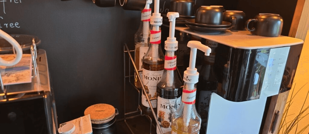 Für unseren kostenfreien Kaffee nutzen wir auch eine Auswahl von Geschmäckern von Monin. Ob die nun lecker sind oder nicht sei jedem selbst überlassen, aber irgendwie scheint es auch egal zu sein.