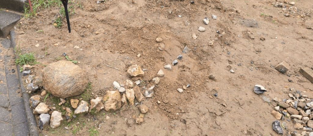 “Baue die Steinkante so weiter, wie du sie links siehst.”