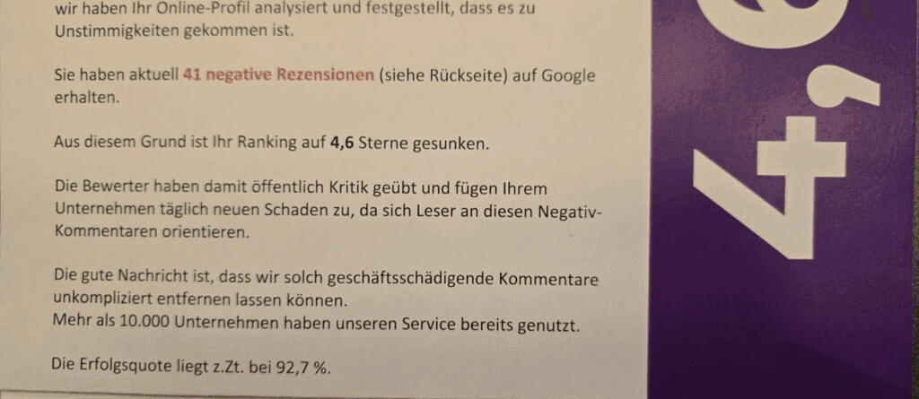 Nein. Wir möchten nicht! Wir brauchen keine Unterstützung bei der Entfernung von “schlechten” Bewertungen!