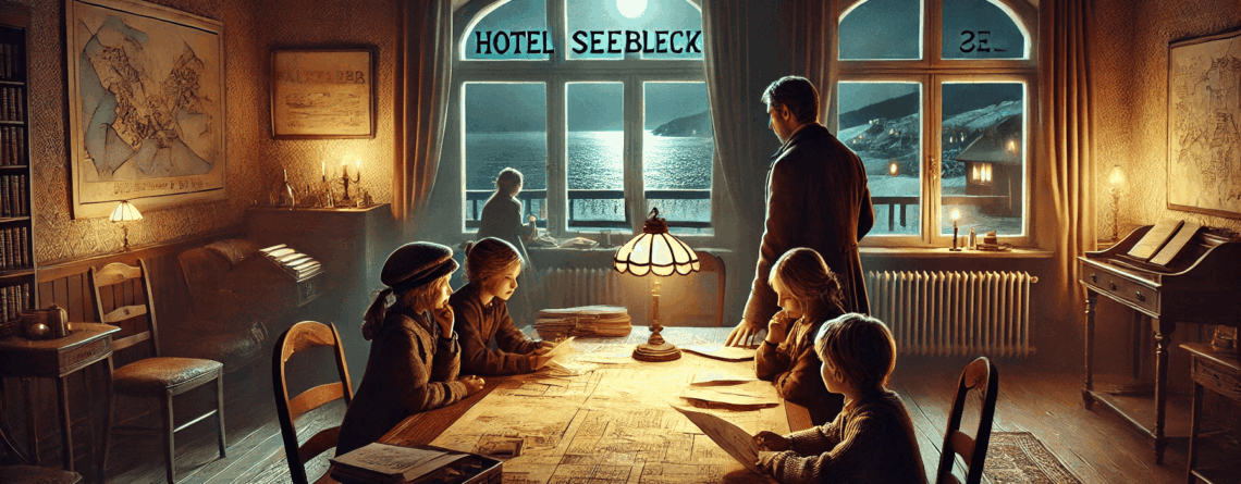 Die Nacht war klar, der Sankelmarker See lag still unter dem Licht des Mondes, als ob er sich ebenfalls zurückgezogen hätte, um zu lauschen. Im Leseraum des Hotels Seeblick brannte eine einzelne Lampe, ihr warmes Licht spiegelte sich auf dem alten Holztisch, auf dem sich eine Vielzahl von Papieren,...