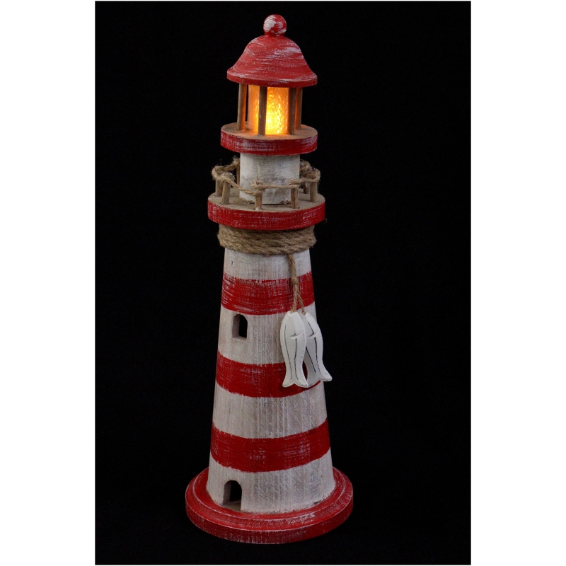 1 Rezension für Dekorativer Leuchtturm aus Holz mit LED (flackernd), rot-weiß, maritim