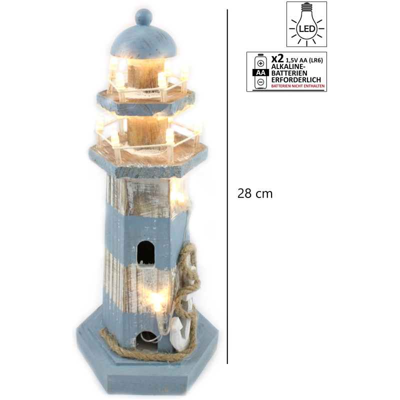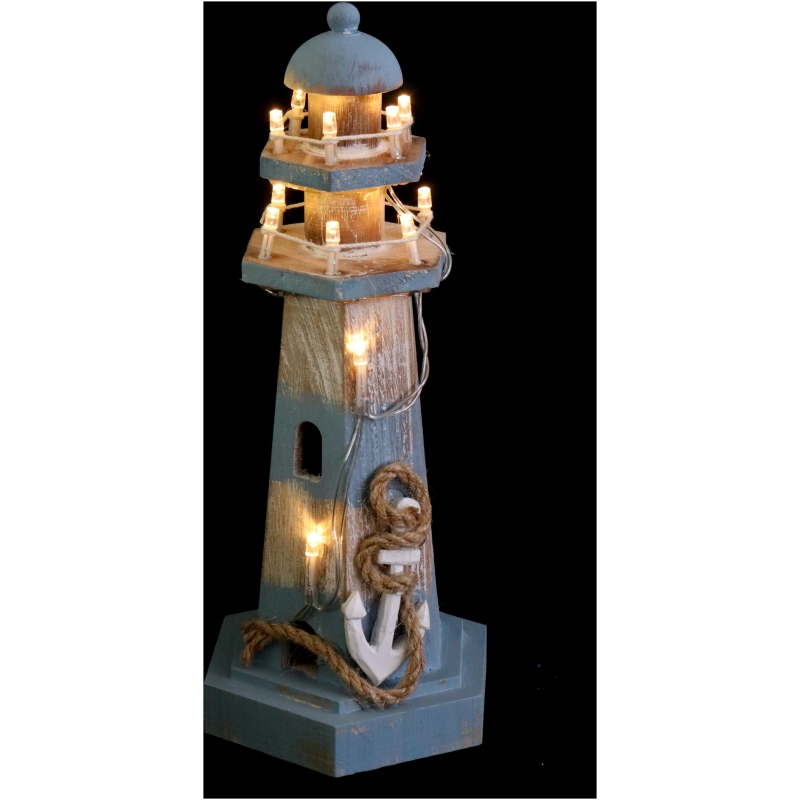 Dekorativer Leuchtturm mit LED Licht aus Holz – Stimmungsvoll