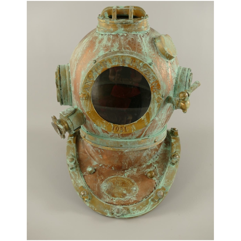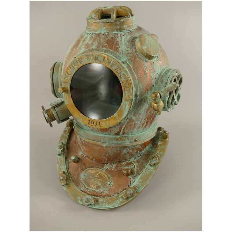 Dieser Taucherhelm vereint höchste Qualität mit exzellenter Handwerkskunst.Die brünierte Oberfläche verleiht ihm ein antikes Flair, das nicht nur unter Wasser Eindruck macht.Die sorgfältige Verarbeitung garantiert Langlebigkeit und Zuverlässigkeit, sodass du dich voll und ganz auf die Schönheit der Unterwasserwelt konzentrieren kannst.Erlebe mit diesem Helm Tauchgänge, die nicht nur sicher, sondern auch stilvoll sind.