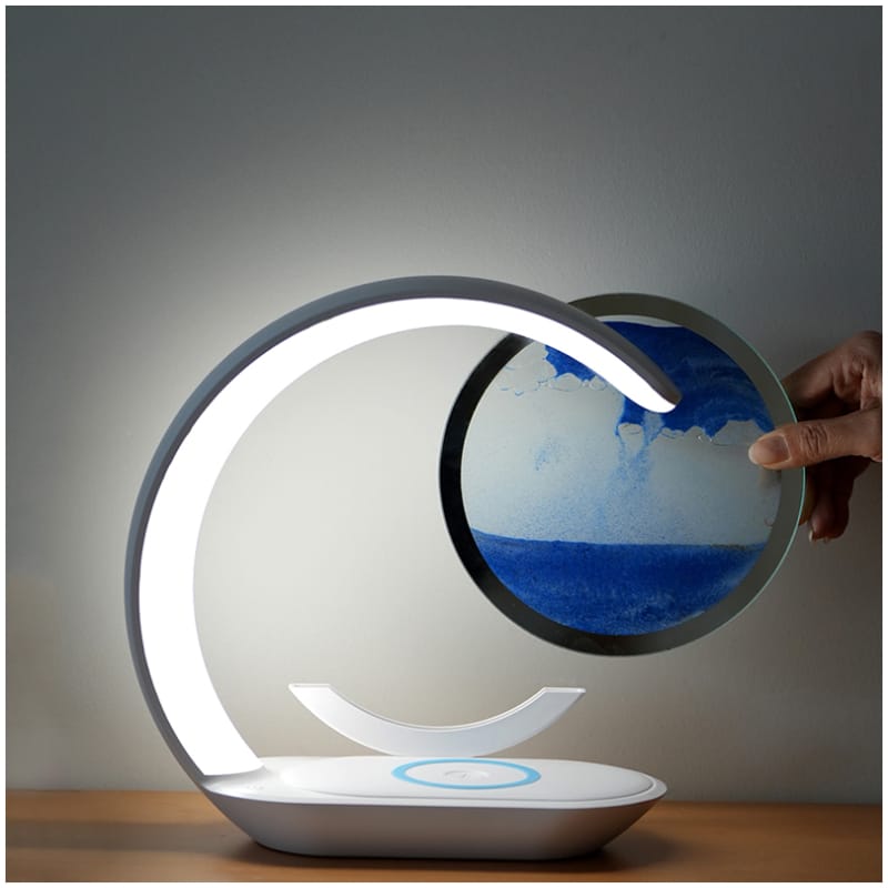 3D Sanduhr – Sandmalerei – Nachttischlampe mit drahtloser Handyladestation