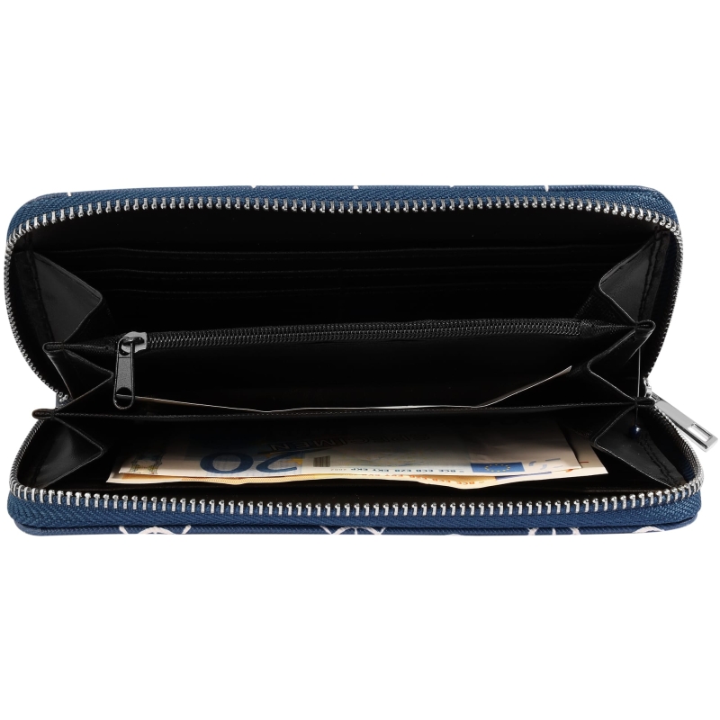Die Cham Cham Damen Geldbörse aus Lederimitat in den Farben Blau und Weiß entführt dich direkt ans Meer.Dieses Accessoire ist nicht nur ein praktischer Begleiter für deinen Alltag, sondern auch ein Ausdruck deiner Sehnsucht nach Weite und Freiheit.Die maritime Farbgebung und das auffällige Steuerrad-Design verbinden Eleganz mit dem lebendigen Geist der Ozeane.Stell dir vor, wie du mit dieser Geldbörse in der Hand den Sand unter deinen Füßen spürst und die salzige Meeresluft einatmest.