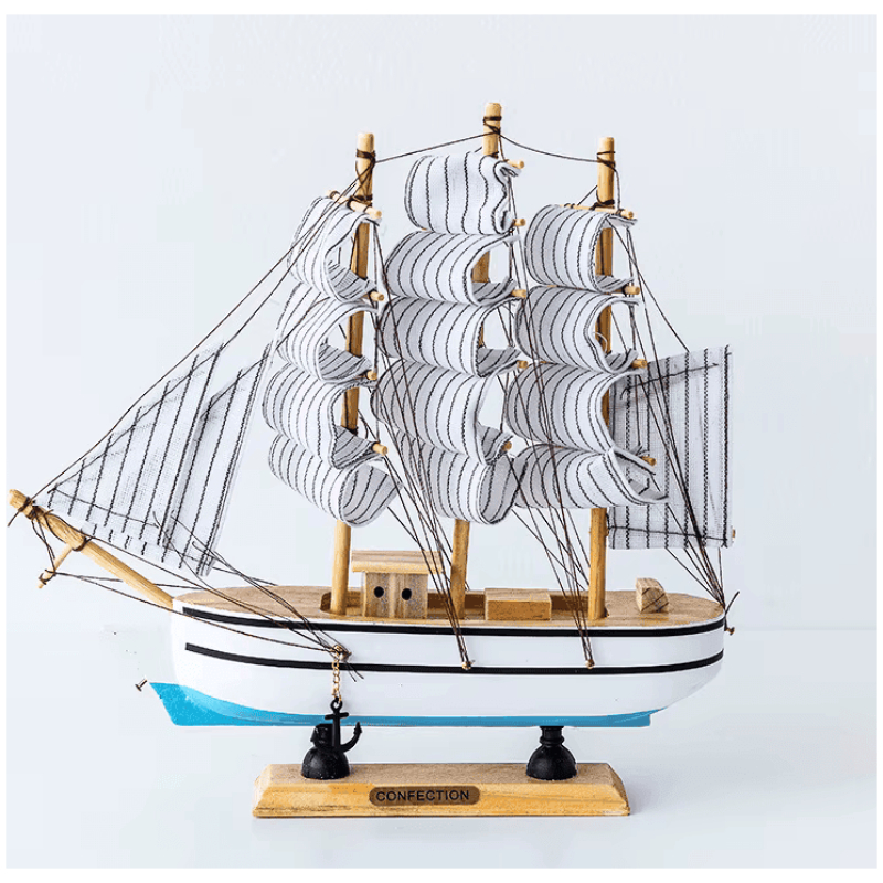 Stelle dir vor, du stehst an Deck eines majestätischen Dreimasters, spürst die salzige Meeresluft auf deiner Haut und hörst das Rauschen der Wellen.Dieses exquisit gefertigte Segelbootmodell mit den Maßen 23 x 4.5 x 23 cm lässt dich genau dieses Gefühl erleben, ohne dass du dein Zuhause oder Büro verlassen musst.Die gestreiften Segel, die im imaginären Wind zu flattern scheinen, sind nicht nur ein optischer Hingucker, sondern wecken auch die Sehnsucht nach Abenteuern auf hoher See.Jedes Detail dieses Modells wurde mit größter Sorgfalt umgesetzt, um eine authentische maritime Atmosphäre zu schaffen.
