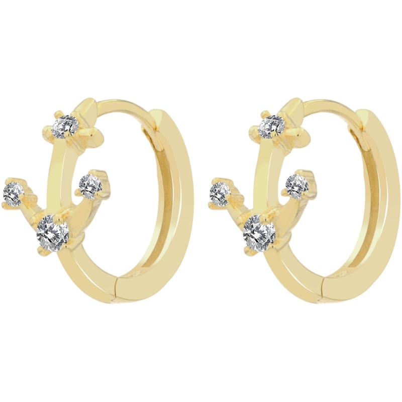 Die "Merlina" Klapp-Creolen sind der perfekte Begleiter für jeden Tag und jede Nacht. Ihre exquisite Kombination aus dem warmen Glanz des vergoldeten Silbers und dem kühlen Funkeln der Zirkonia macht sie zu einem echten Blickfang. Ob im Büro oder auf einer Gala, diese Ohrringe heben deinen Look auf ein neues Level der Eleganz. Sie sind die ideale Wahl, um deinem Outfit einen Hauch von Glamour zu verleihen und deine Persönlichkeit strahlen zu lassen.