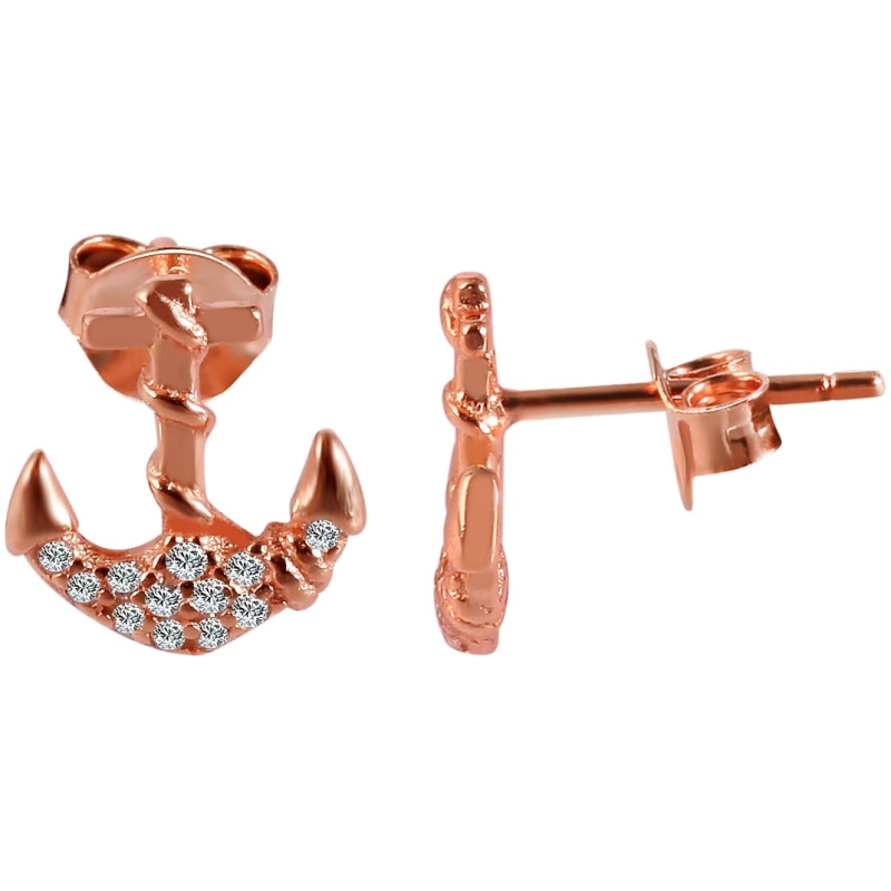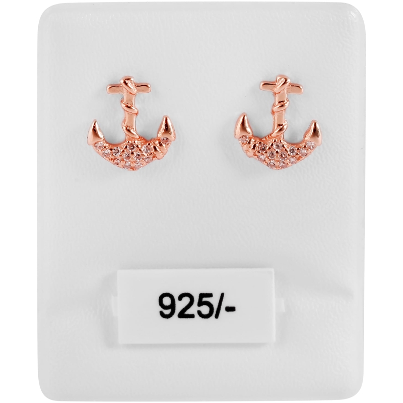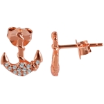 Exklusive 925/- Echt Silber Ohrstecker “Anke” Anker mit Zirkoniabesatz, rosévergoldet