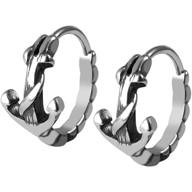 Exklusive Akzent Klapp-Creolen, Edelstahl, maritim, Anker-Design