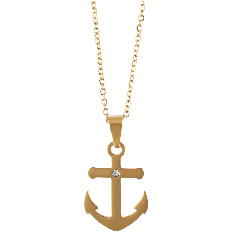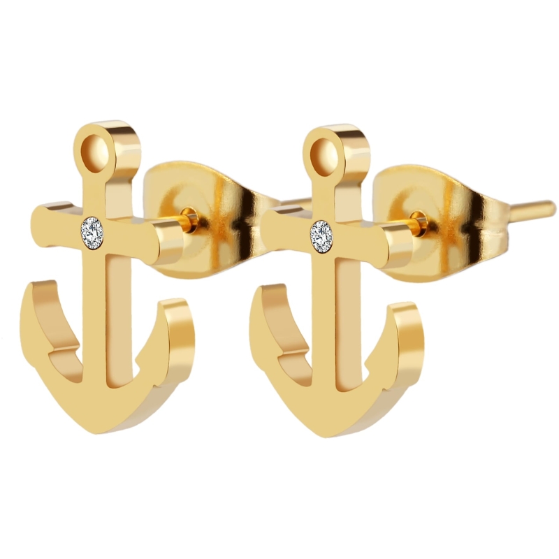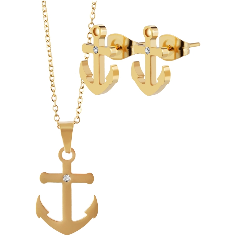 Luxuriöses Edelstahlschmuckset mit Ohrsteckern und Anhänger im Ankerdesign, gold