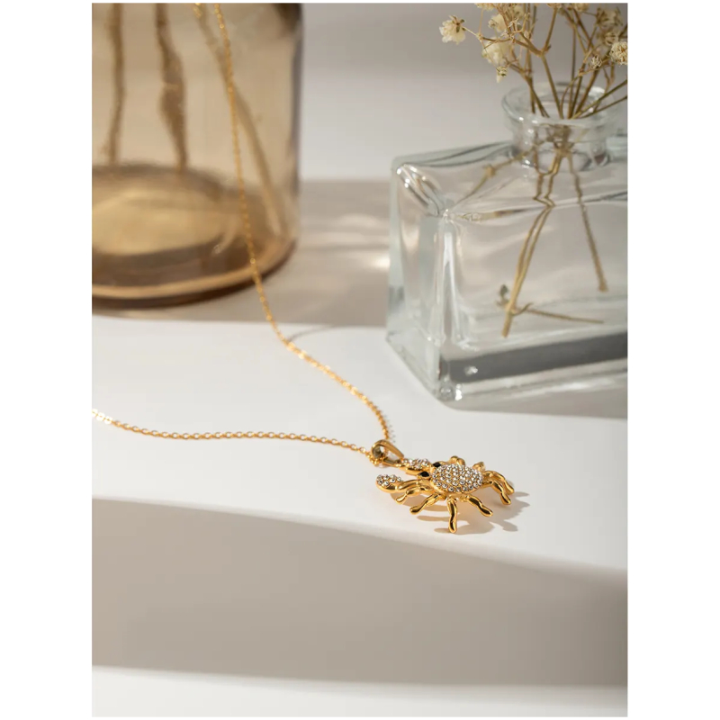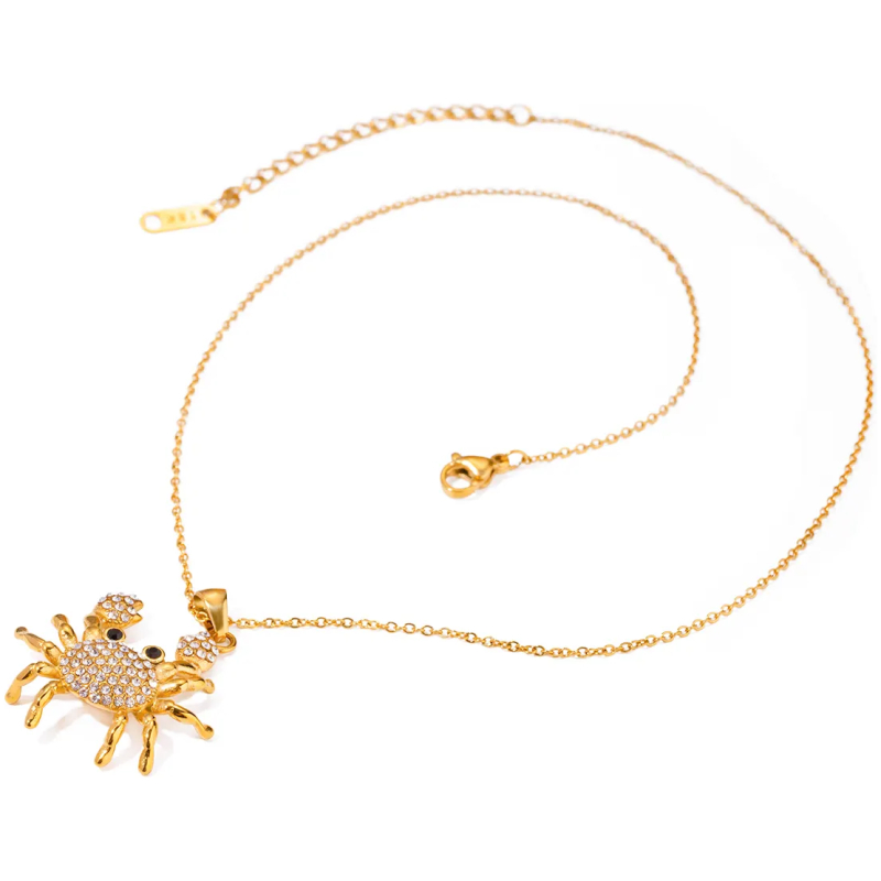 Diese goldene Edelstahlkette ist mehr als nur ein Schmuckstück – sie ist ein Statement.Sie verkörpert Eleganz, Stil und Selbstbewusstsein.Sie ist das ideale Accessoire, um deinen Look zu vervollständigen und ein Gefühl von Luxus und Raffinesse zu vermitteln.Mit ihrem einzigartigen Krabbenanhänger und den funkelnden Steinchen zieht sie alle Blicke auf sich.Verwöhne dich selbst mit dieser wunderschönen Kette und strahle Selbstbewusstsein aus.Hol sie dir jetzt und erlebe, wie sie deinen Alltag verzaubert und deine besonderen Momente noch schöner macht.