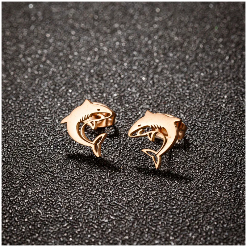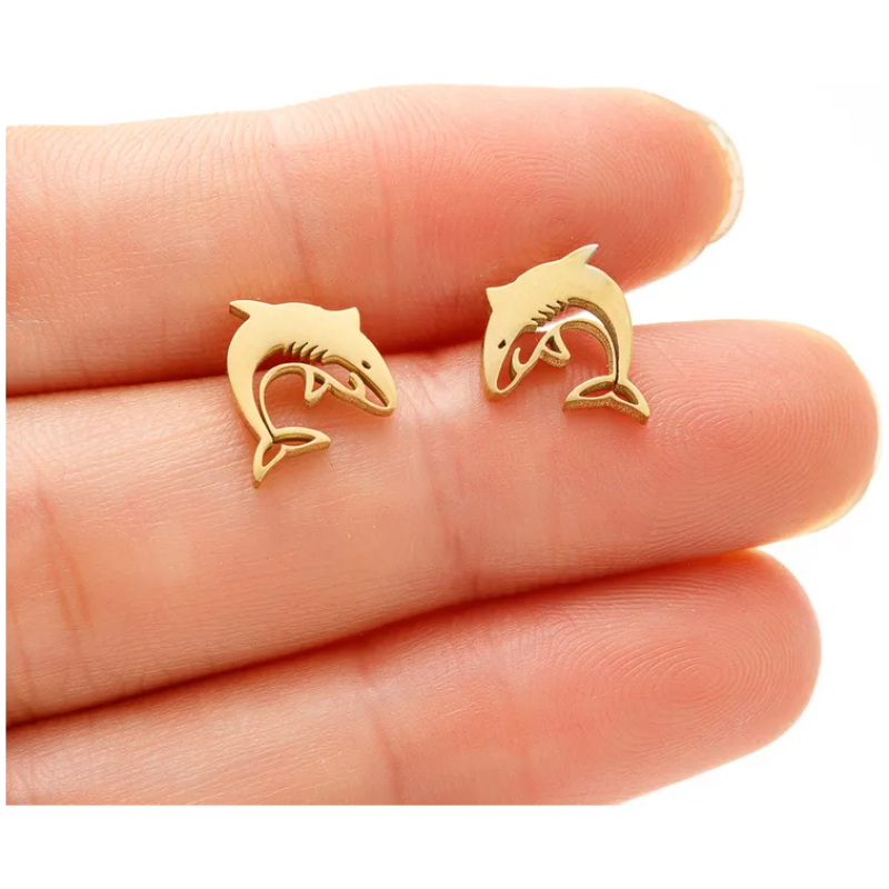 Süßes detaillreiches Haifisch Ohrstecker Paar, 1 cm, verschiedene Farben, Edelstahl