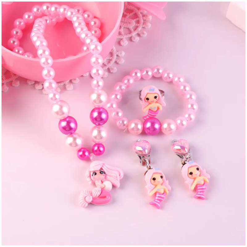 5-teiliges süßes Schmuckset für Kinder in rosa, Meerjungfrau – in Geschenkbox
