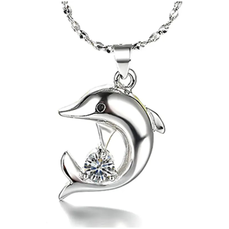 Bezaubernde Delfin Halskette in Silber mit funkelndem Stein