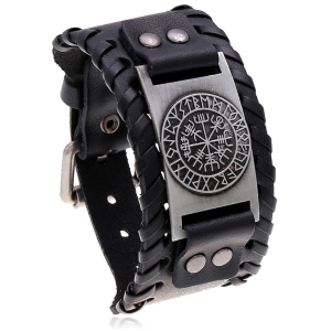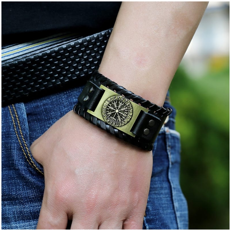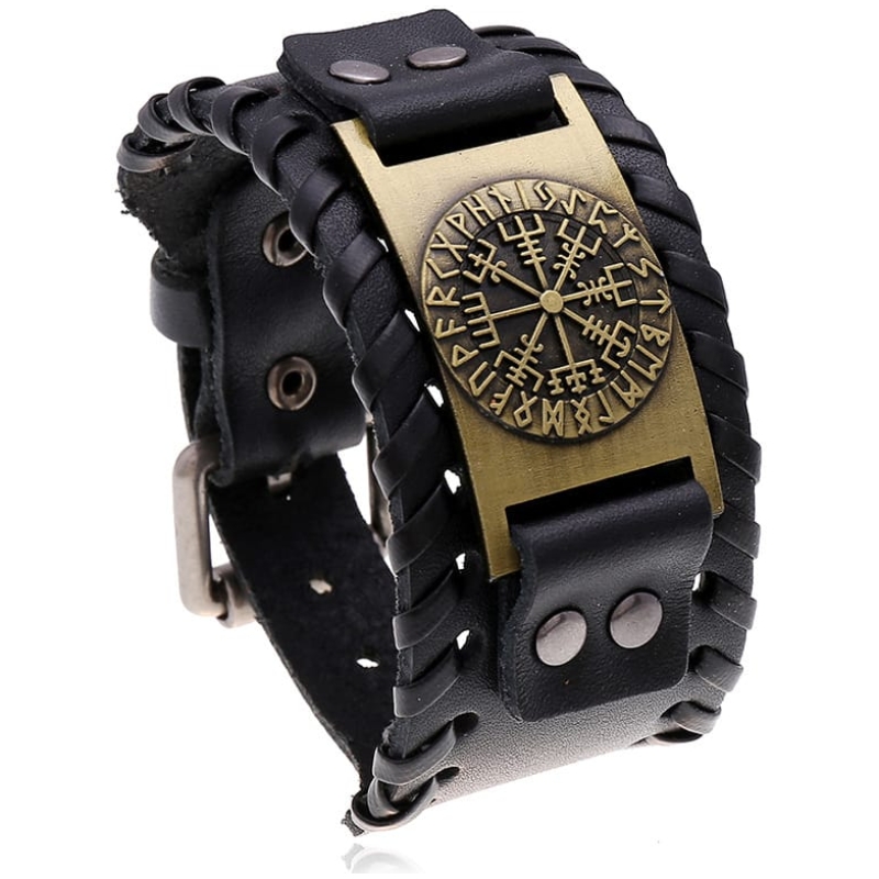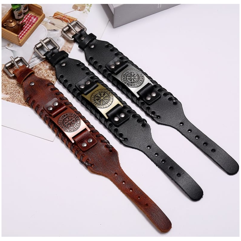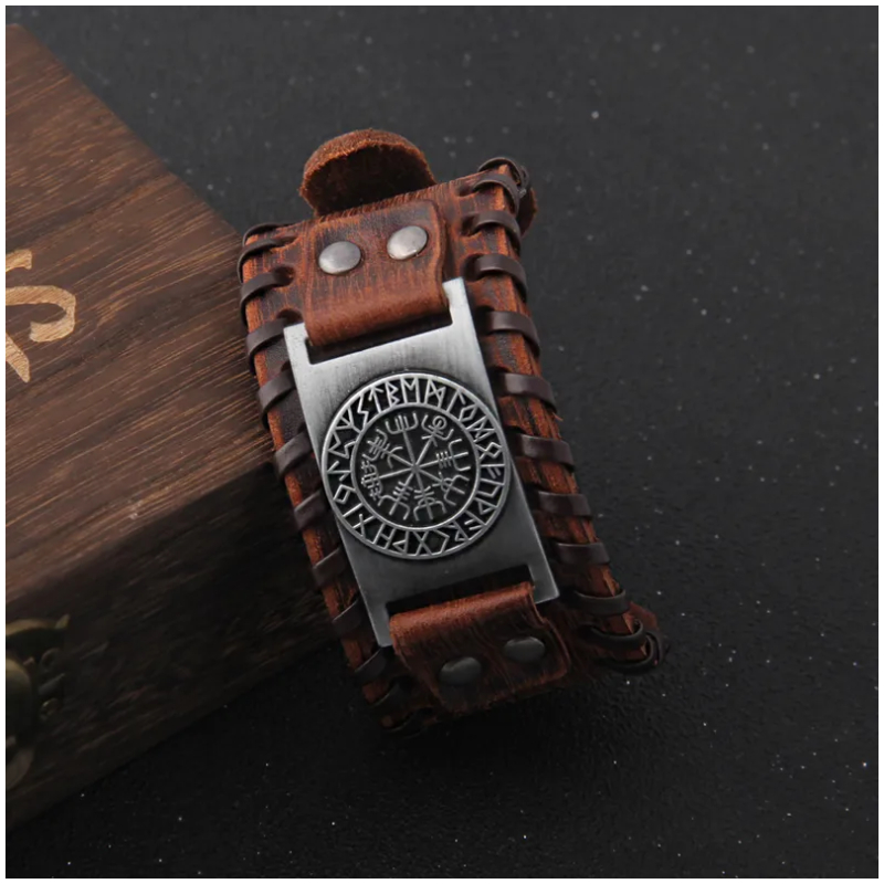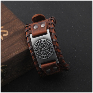 Nordisches Wikinger Armband aus Leder mit Kompass
