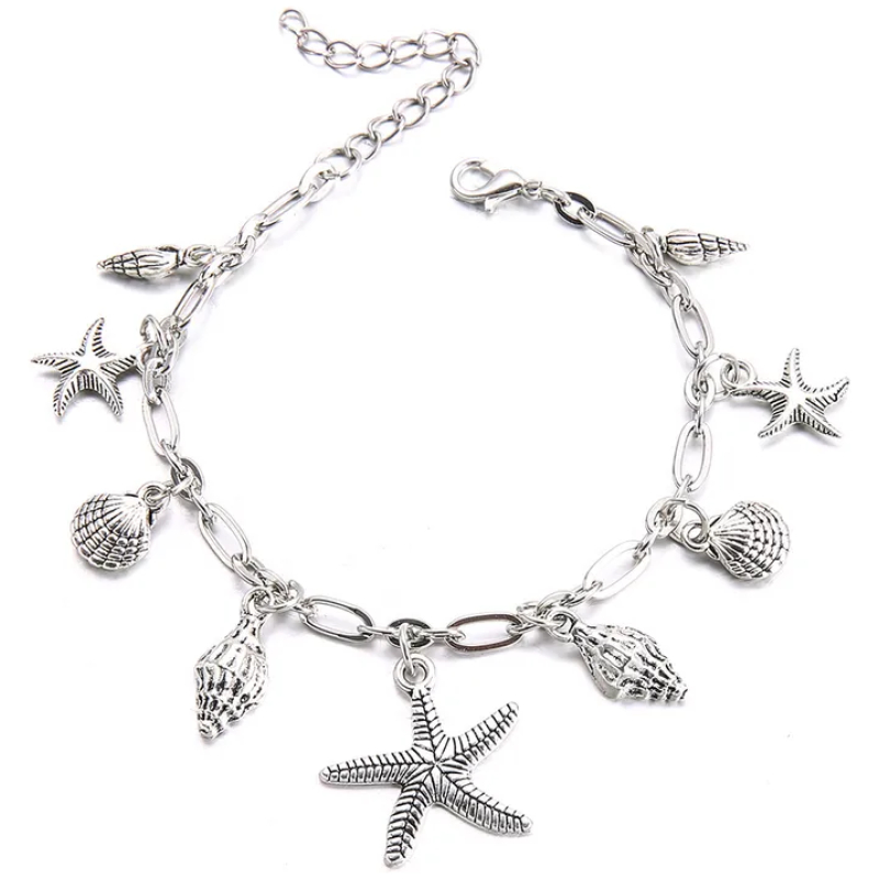 Sehr detailreiches Fußkettchen aus Edelstahl, mit Seestern und Charms