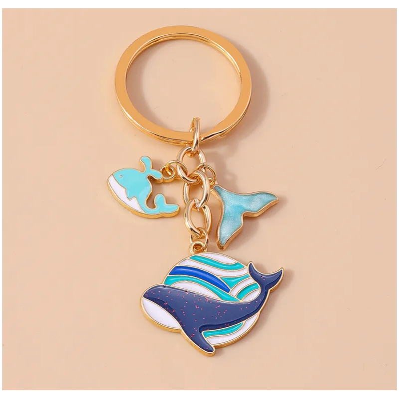 Jedes Detail des Schlüsselanhängers wurde sorgfältig ausgearbeitet, um die Schönheit und Majestät des Ozeans zu reflektieren.Der Anhänger zeigt einen stilisierten Wal, dessen sanfte Kurven und das lebendige Blau-Weiß-Muster dich sofort an die unendlichen Weiten des Meeres erinnern.Die hellblauen Charms am Schlüsselring ergänzen das maritime Thema und bringen die Farben des Himmels und Wassers zusammen, die dich an schöne Sommertage am Strand denken lassen.